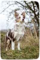 Cathy ist eine reinrassige Bordercollie-Hündin (tan) aus einer guten Zucht (weitere Informationen im Servicebereich), unkastriert und im Juli 2014 geboren.